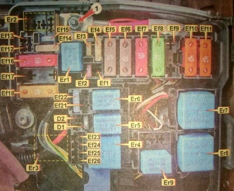 | Er1 (20 А) | Реле звукового сигнала сигнализации |