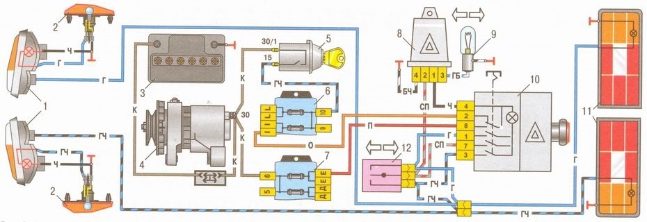 Схема поворотов и аварийки ВАЗ 2106